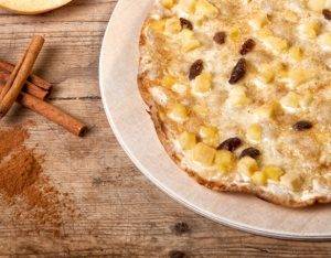 „Süß“ belegt mit Schmand, Apfelstückchen, Rosinen & Zimtzucker